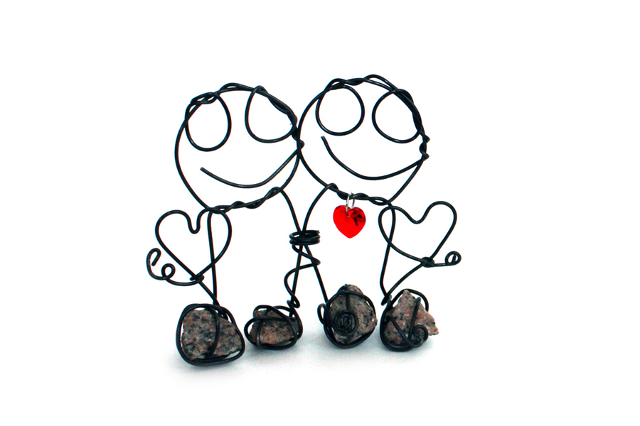 Parallèlement à ma pratique plus contemporaine je conçois et réalise des "Capteurs de paix et d'amour" (mini sculptures en fil de fer) à offrir en toute occasion. Ces sculptures font suite à mon inquiétude au lendemain des attentats du 11 septembre 2001. À ce moment le besoin de créer un produit qui véhicule un message de paix et d'amour s'est imposé. Et je crois que c'est toujours actuel.